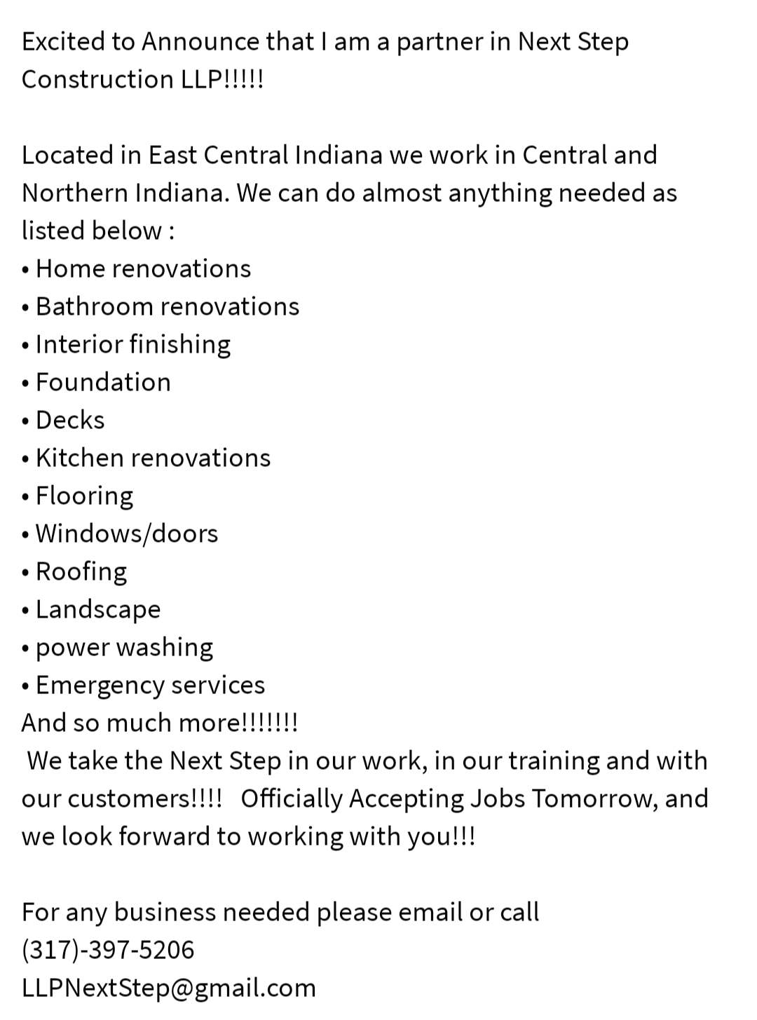 We are a new Construction Company that offers just about anything and everything needed to complete a construction project! From Geotechnical engineering to fixing the current roof with a 17% discount from any estimates from previous company's!!